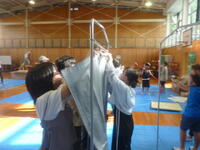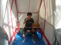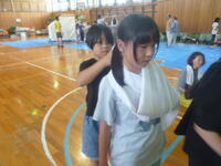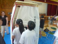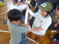 「仮設トイレ設営」と「三角巾講習」を行いました。