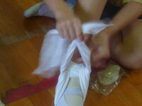コッペパンにお箸で切り込みを入れてチキンをはさんで食べている子もいました。