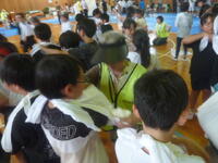 避難所運営訓練後は,酒西小高学年(5,6年生)と地域の方々と合同で,