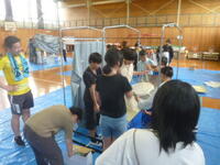 合同訓練では,実際に地域の方々が避難してきた際の,避難所設営訓練でもあります。