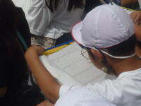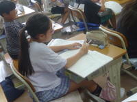 の他の生き物も見つけていました。自分で獲った虫たちの名前を,聞いたり,調べたりしました。