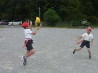 さっそく,4年生が体育の授業で「タグラグビー」を行っていました。