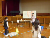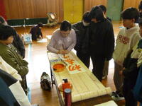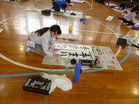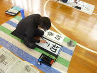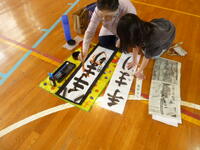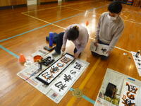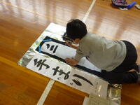 朝から寒く,体育館の状況はどうかなと思いましたが,教頭先生や書写担当の小金丸先生が,