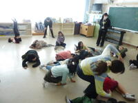 劇が終わった後の子どもの感想には,「戦争を起こしてはいけないと思った。」,「怖い」,「平和って大切」などがありました。戦争が行われていない国にいるからいいではなく,みんなが安心して生活できる世界にしていくことを未来を創っていく子どもたちが意識する機会になったのではないかと感じました。