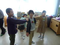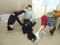 「ワンタッチ彫刻」は3~4人のグループでじゃんけんに勝った人が最初に,思い思いのポーズをとり,