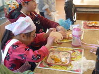 それぞれが好きな物をのせて,彩のあるお菓子を作りました。もちろんお味は,「おいしい!」。