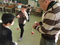 生活科の授業の一環として,1年生が「昔の遊び」の体験をしました。