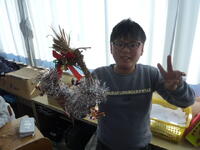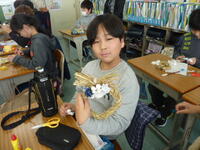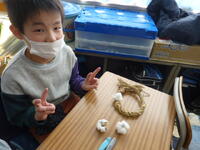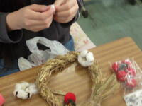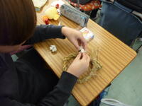 「なわない」で「なわ」を人数分作り,その「なわ」に,各自が持参した「装飾」を縄につけてリースを作りました。