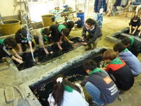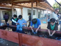 武州中島碧屋で藍染体験を行いました。ハンカチに模様をつけるために折り方を工夫したり、輪ゴムの位置を変えたりすることに楽しそうに取り組んでいました。仕上げの水洗いでは水の冷たさに驚いていましたが全員が世界に一つだけのハンカチを作ることができました。出来上がったハンカチは持って帰りますので楽しみにしていてください。