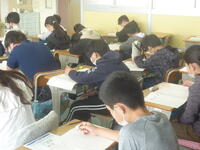 今回は筆記のテストです。真剣に取り組んでいます。ファイト!