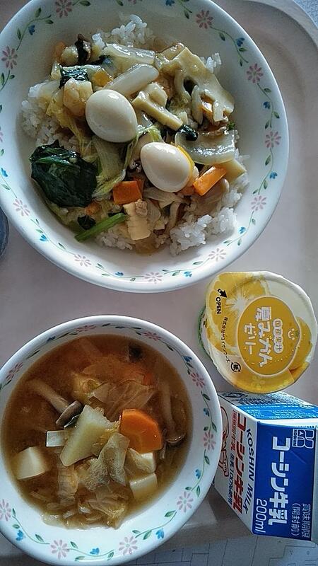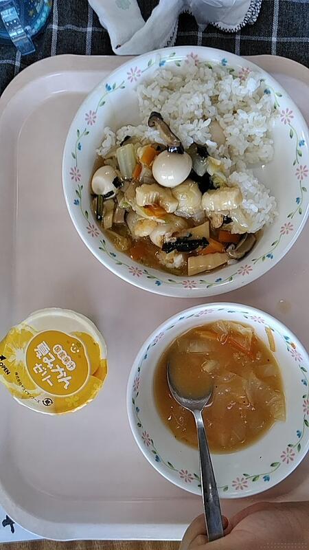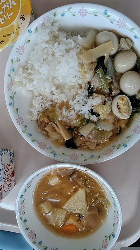 ↑給食大好きな1年生何人かの配膳後の写真(上の写真と同じくらいの量ですね)