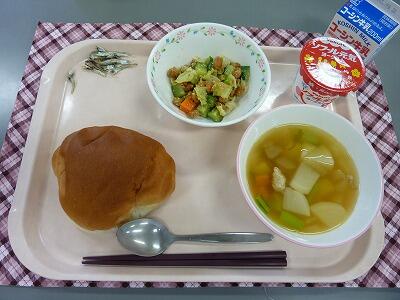 牛乳 給食ロール ポトフ 大豆サラダ ヨーグルト 小魚