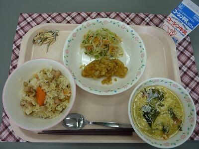 牛乳 中華おこわ ホキのから揚げねぎソース バンサンスウ わかめと卵のスープ