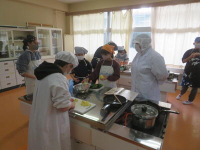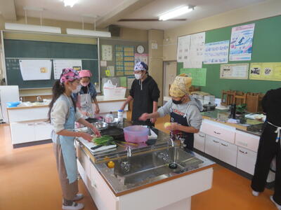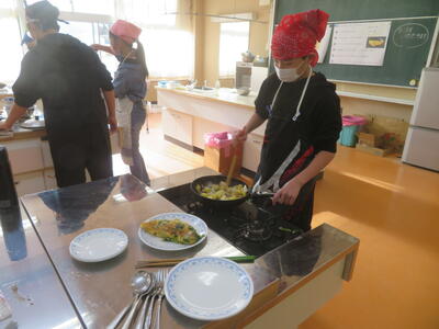 16日(火)は、6年生が調理実習を行いました。6年生は卵とジャガイモを使った料理です。ほうれん草とチーズの入ったオムレツと玉ねぎとベーコンと一緒に炒めたジャガイモ料理を作っていておいしそうなにおいが家庭科室に広がっていました。片付けも手際よく行っていました。
