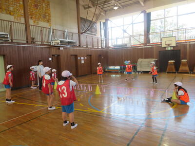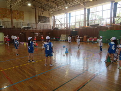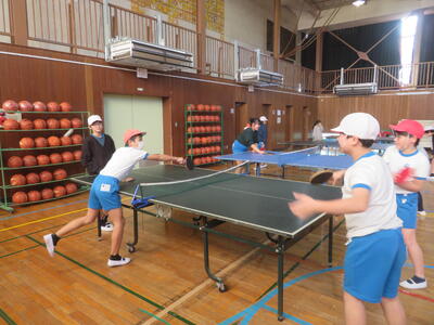 17日(水)に3年生が体育館でプレルボール大会を行いました。プレルボールとは、バレーボールとテニスを組み合わせたようなネット型のスポーツで、ボールを自陣でバウンドさせながらパスをつなぎ、手を使って相手コートに打ち返して得点を競います。体育科の学習で行ってきたまとめとしての大会でした。どのチームも優勝目指して頑張っていました。