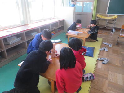 2年生は生活科で作ったおもちゃの作り方などを説明しあいました↓