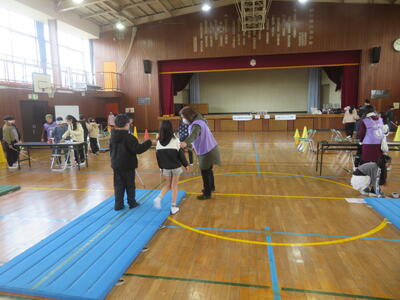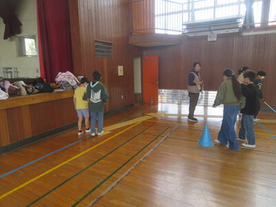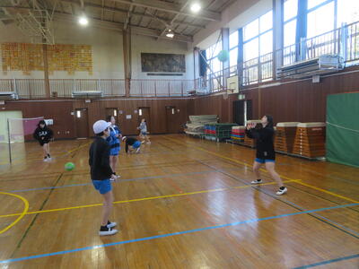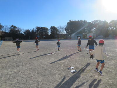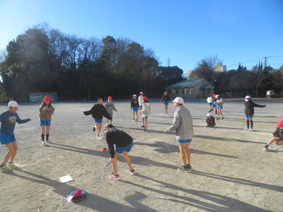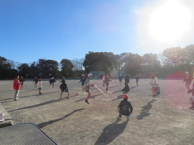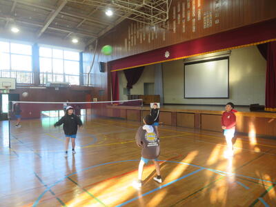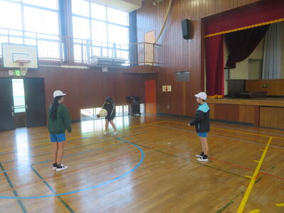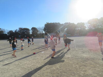 22日(木)は、朝の冷え込みが厳しかったのですが、子どもたちは元気に体育科の学習を行っていました。5年生は外で縄跳びです。今週から縄跳び強化月間となり、検定カードにできた技を記録していきます。また後ろ跳びで1分間跳び続けられるかにも挑戦していました。6年生は体育館でソフトバレーボールの学習です。ボールを上手に上にあげ、友だちの名前を呼びながら、パスの練習をしていました。