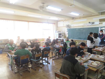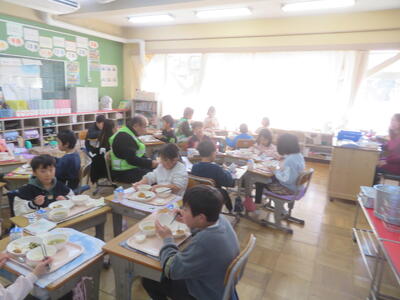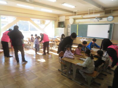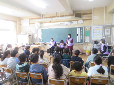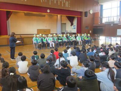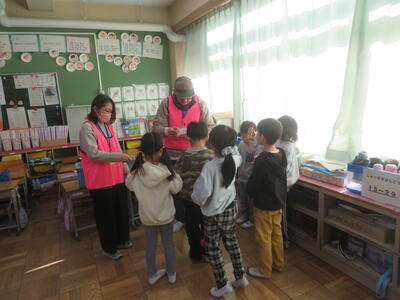 2日(月)に感謝の会を開きました。これは、毎日、登下校の見守りをしてくださっているエビネ隊の皆様、ボランティアとして読み聞かせをしてくださっているお話ダンボの皆様をお招きして、感謝を伝える会です。児童代表のお礼の言葉の後、「柏ハッピー」の歌のプレゼントをしました。「とても感動しました」という言葉をいただきました。会の後は教室で給食を一緒に食べました。地域の人たちと子どもたちがつながる素敵な会となりました。