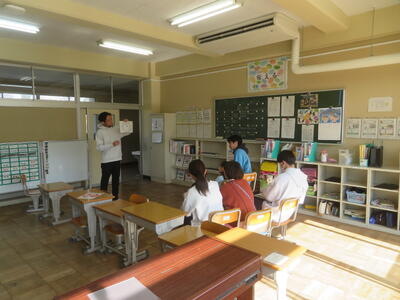 学校では、教職員一人一人の授業力を向上させることを目的に、校内で互いに授業を見合い、協議する機会を設けています。27日(火)は特別支援学級の授業を参観し、協議しました。