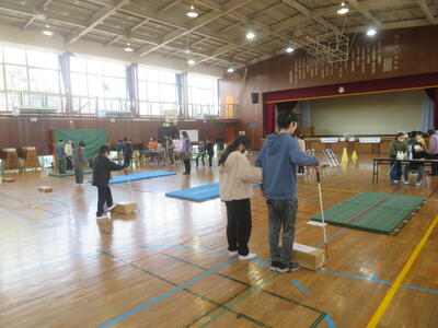 白杖体験の様子↓