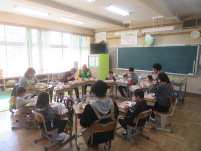 23日(金)に1年生が生活科の学習で昔遊びを体験しました。逆小スマイルの方にもお力添えいただき、けんだま、おはじき、お手玉、こま、あやとり、竹とんぼ、羽子板などを体験しました。今のゲームと違って、すぐにうまくいくものばかりではありません。逆小スマイルの方に教わりながら、一生懸命取り組む姿がとても微笑ましかったです。