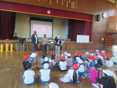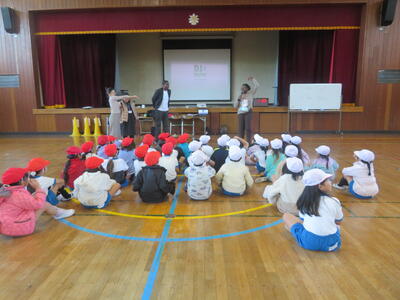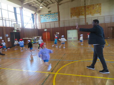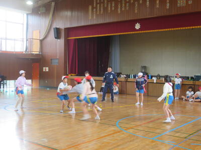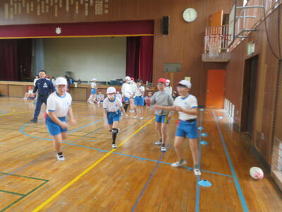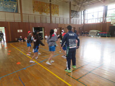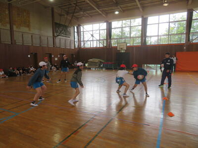 20日に、NECグリーンロケッツの方をお招きして、タグラグビー教室を実施しました。あいにくの天気で体育館での実施となりましたが、子どもたちはプロの技を目の当たりにして驚きながらも、ボールを素早く回してトライするなど、体育館は熱気に包まれました。この教室のあとも体育の時間でタグラグビーを行っていきます。教わったことを生かして、さらにプレーがレベルアップするのではないかと思います。