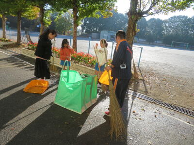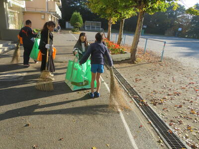 11月も下旬となり、通学路や学校内にはたくさんの落ち葉があります。しかも、昨日降り続いた雨で、葉が濡れて、滑りやすくなっていました。3年生以上の希望者からなる落ち葉ボランティアが、一生懸命濡れた落ち葉を取ってくれたおかげでとても歩きやすくなりました。まだまだ落ち葉は増えそうです。落ち葉ボランティアの皆さん、お願いします。