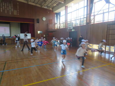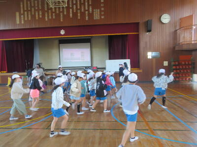 26日(火)の5、6時間目に3年生の児童を対象に体育サポート教室を行いました。OKASの方を講師としてお招きし、子どもたちは体ほぐし運動を楽しみました。色々な動きの中で体を動かす楽しさを味わっていました。