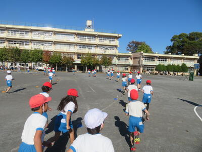 6年生は体育の時間でタグラグビーを行っています。「ハンバーガーポジション!」など、先日、NECグリーンロケッツの出前授業で教わったことを生かしながら学習を進めているせいか、動きがスムーズになった気がします。練習を重ね、この後、大会を開きます。今から結果が楽しみです。