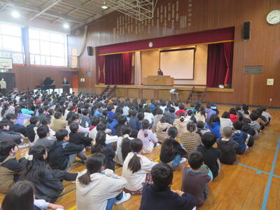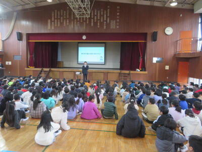 3月始めの登校となった3日に全校朝会を行いました。暖かかった昨日とは違い、冷たい雨が降る中でしたが、子どもたちは元気に登校してきました。明日の6年生を送る会、来週の卒業式、そして修了式と、卒業、進級に向けた1か月が始まりました!