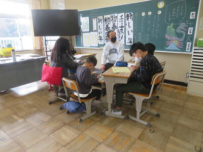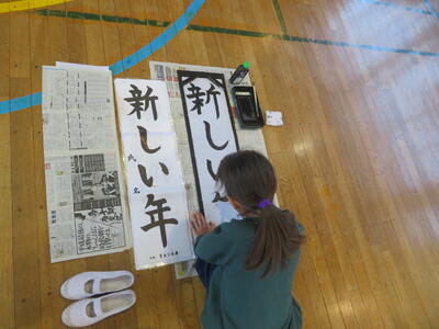 28日(木)は、5,6年生の書初め練習会でした。5年生は「新しい年」6年生は「初春の風」と3,4年生に比べ、画数が増え、バランスもとりづらくなります。講師の先生のアドバイスを受け、熱心に練習に取り組みました。