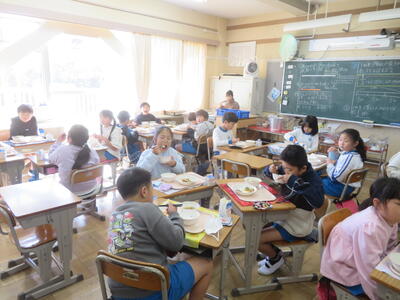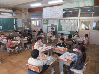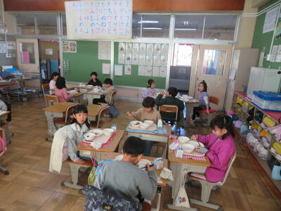 6年生は逆井小学校最後の給食です↓