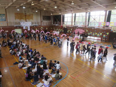 6年生の入場です。1年生と手をつないで入場してきました↓