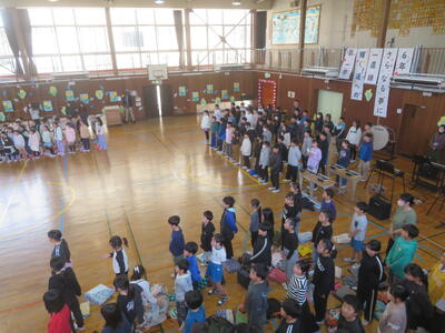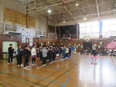 27日(金)は6年生を送る会でした。1~5年生は6年生に「ありがとう」の気持ちを伝えるために一生懸命練習してきました。それを真剣な目で見ている6年生。とても素敵な会となりました。