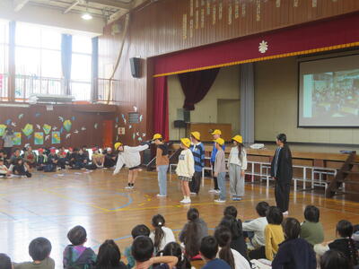 1年生は、6年生に手伝ってもらったことを劇で発表しました。歌のプレゼントもありました↓