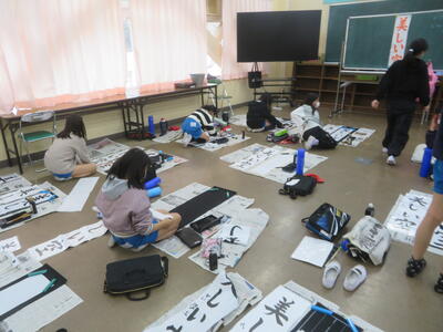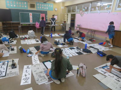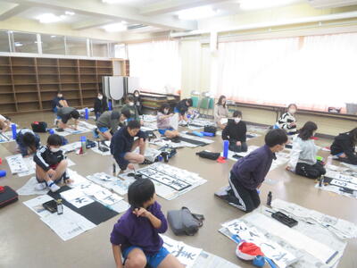 26日(水)に5,6年生が体育館で書初め練習を行いました。講師の先生をお招きし、一文字一文字ポイントを教わりながら、練習しました。自分の書いた文字を見てもらい、より良くなるようなコツも教わりました。12月、冬休みと練習し、1月の校内書初め展に向けて頑張ってほしいと思います。