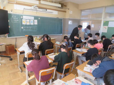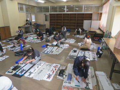 もうすぐ冬休み。冬休みの課題の一つに書初め練習があります。11月には講師の先生をお招きして、体育館で練習したことを思い出しながら、書いていました。冬休み明けの1月に校内書初め展もあります。精一杯練習して自信ある作品を完成させてほしいです。