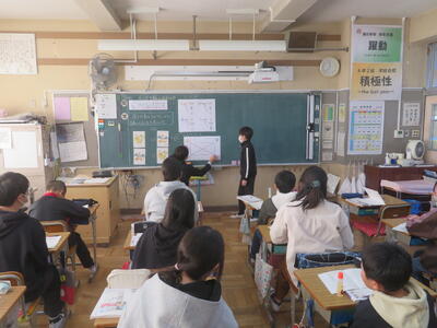 12日(水)の3時間目は3年生は理科と国語の学習でした。理科では豆電球に明かりをともすにはどうすればよいかを確かめていました。どういうときに明かりがつくのかを結果から考えていきます。国語は話し合いをしていました。絵文字について学習した後に、体育館の絵文字はどのようなものにすればよいかを司会者が問い、意見を出し合っていました。どのような絵文字ができあがるのでしょうか。