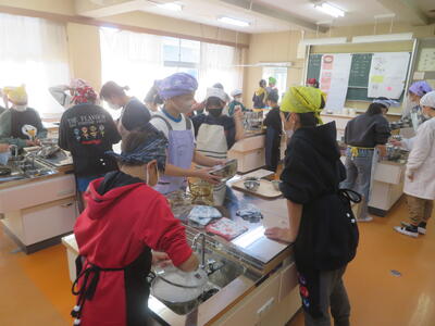 16日(火)は、6年生が調理実習を行いました。6年生は卵とジャガイモを使った料理です。ほうれん草とチーズの入ったオムレツと玉ねぎとベーコンと一緒に炒めたジャガイモ料理を作っていておいしそうなにおいが家庭科室に広がっていました。片付けも手際よく行っていました。