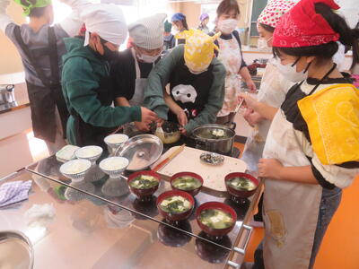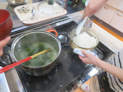 15日(月)に調理実習を5年生が行いました。ご飯とみそ汁を作るのですが、お米は逆井小学校で育てた「エビネ姫」です。田植え、稲刈り、脱穀と自分たちで育てたお米を使ってご飯を炊きます。味はどうだったのでしょう。きっとおいしかったはずです。