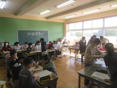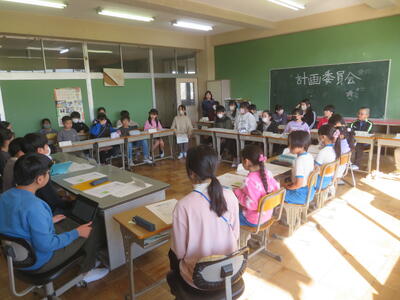 16日(木)に3学期最初の代表委員会がありました。代表委員会とは、計画委員が中心となって、各クラスの学級委員、各委員会の委員長が集まり、学校をよりよく、楽しくするための企画を提案し、協議する会です。今回は、あいさつ運動、なかよし活動、歩行運動、そしてじゃんけん列車大会についての提案がありました。先日、任命式のあった各クラスの学級委員さんも堂々と会議に参加していました。