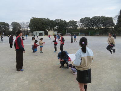 1月19日から縄跳び強化月間が始まりました。業間休みや昼休みに長縄や短縄に挑戦する児童が増えてきました。業間休みにはビブスを着た体育委員が跳べたかどうかを見てくれて、跳べていれば持っている縄跳び検定表にシールを貼ってくれます。昨年度よりもできる技や回数が増えるといいですね!