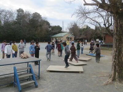 28日(水)のロング昼休みは1組のなかよし活動でした。なかよし活動は、1年と6年、2年と4年、3年と5年がペアになって遊ぶものです。おにごっこなどは、上の学年はスキップで逃げるなどルールを工夫して遊びます。毎学期行っているので、いつも以上に楽しく遊んでいたように見えました。
