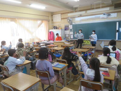 3日(水)のロング昼休みは、なかよし活動でした。今日は2組同士です。あいにくの天気でしたが、教室でなんでもバスケットや絵しりとりで楽しく遊ぶ姿が見られました。4,5,6年生のお兄さん、お姉さんが中心となって進めていました。