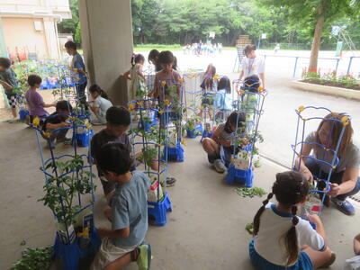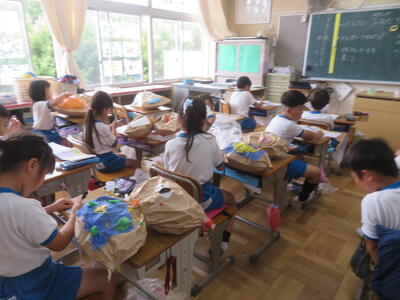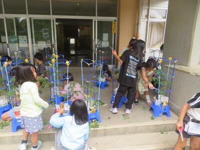13日(金)に2年生が生活科で育てているミニトマトの世話をしていました。病気になってしまった葉をとって、より元気に育つようにしていました。もう一クラスは図画工作科の学習で作品作りに取り組んでいました。どちらのクラスも集中して作業していました。
