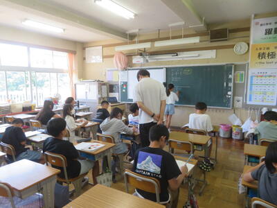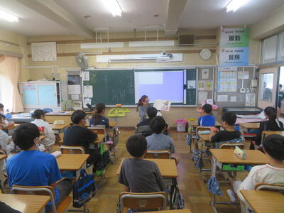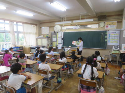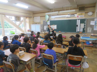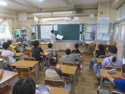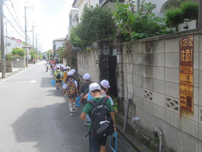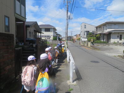 4日(水)に2年生が生活科の学習として町探検に行きました。1学期の町探検は、学区を先生と一緒に回ります。いつも通っている場所とはいえ、学習として歩くと、いつもとは違う何かを発見した子も多かったようです。2学期の町探検では、グループごとに範囲を今日よりも広げて行う予定です。