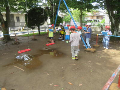 9日(月)は曇り空でした。今週は雨の日が多いとの予報があり、関東地方も梅雨入りとの声もあります。6月は気持ちよく外で遊べる日が少ないのでしょうか。今日は元気に外で遊ぶ姿が見られました。