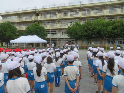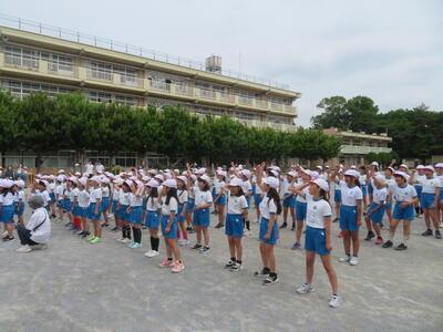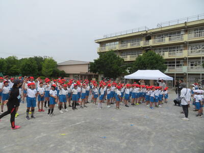 16日(金)に運動会の全体練習を行いました。今日は開閉会式とラジオ体操の練習です。皆、真剣な表情で練習していまいした。応援歌では紅組も白組も精いっぱい大きな声で歌っていました。当日が楽しみです。
