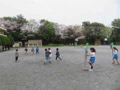 給食が終わった後は、子どもたちが楽しみにしている昼休みです。11日(金)は涼しく、外で遊ぶには快適な天気でした。ボール、長縄や竹馬など様々な遊びで楽しんでいました。