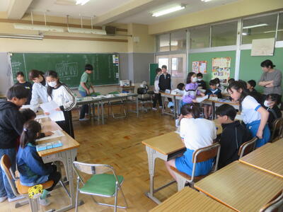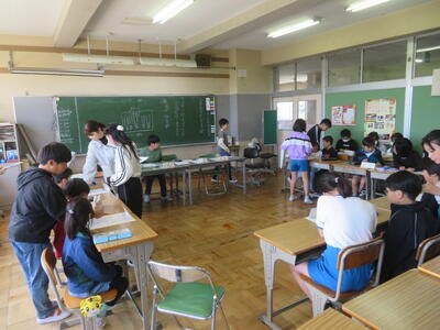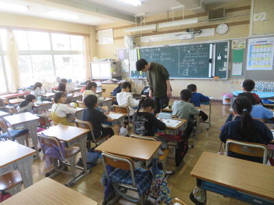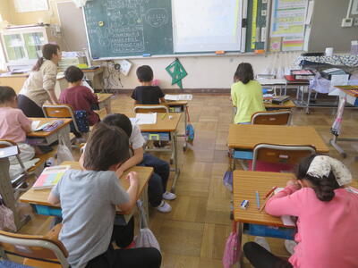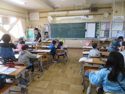 逆井小学校には、算数専科の先生がおり、主に3年生と4年生の算数科の授業を担っています。4年生の「大きな数」の学習では、担任2人と算数専科の3人で、2クラスを3つに分けた少人数で算数科の学習を行っていました。クラス替えのなかった4,6年生は4月当初から少人数の学習を取り入れていますが、この後、学習内容を吟味しながら、2,3,5年生でも少人数の学習を取り入れていきます。
